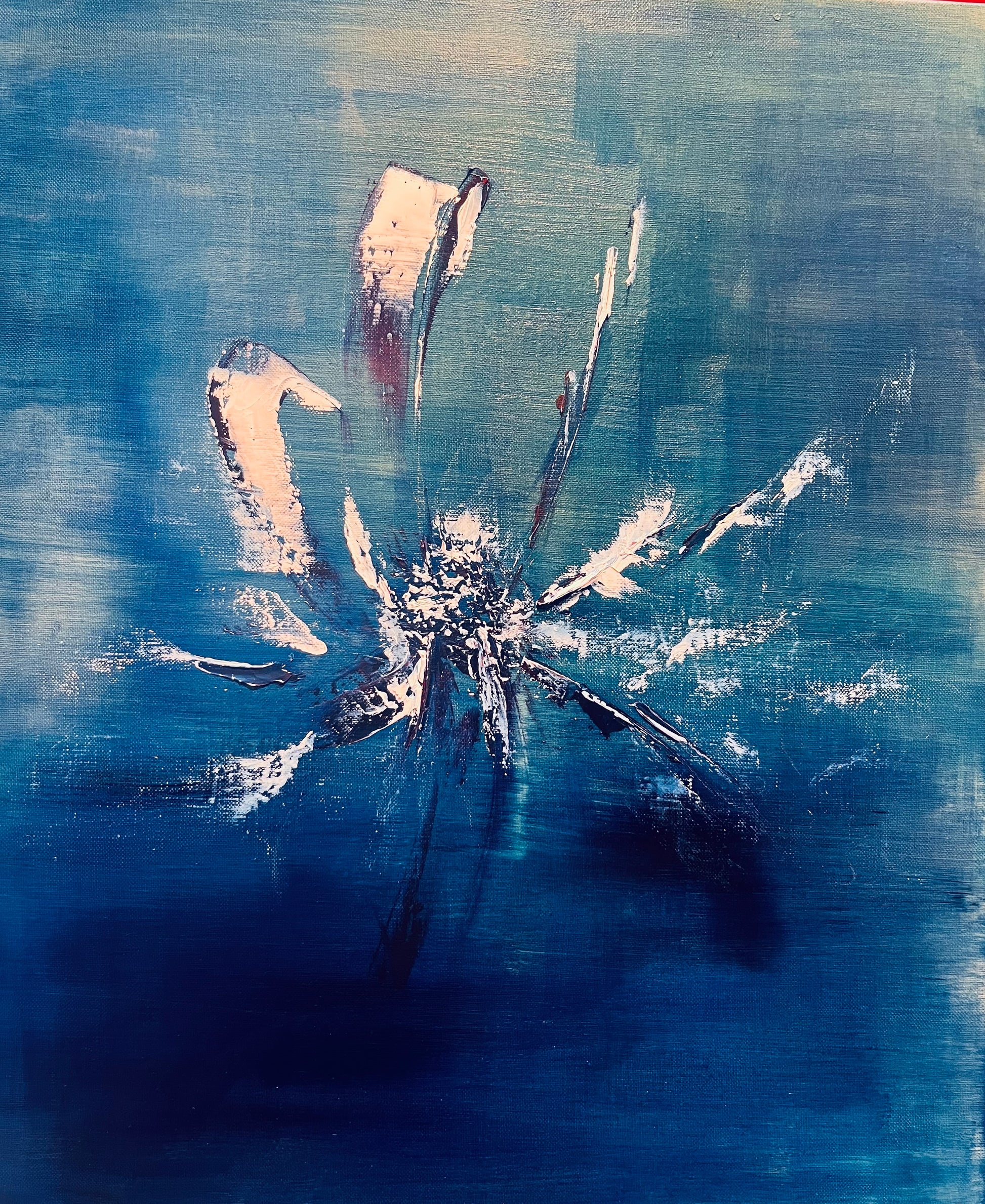 Dans cette œuvre, j’ai voulu capturer l’essence fugace d’une fleur éphémère flottant dans un océan de sérénité bleue. L’huile s’étire en nuances abstraites, mêlant douceur et mouvement, invitant à la méditation. Cette peinture apportera à votre intérieur une onde apaisante et un souffle poétique, éveillant l’émotion et la contemplation à chaque regard.